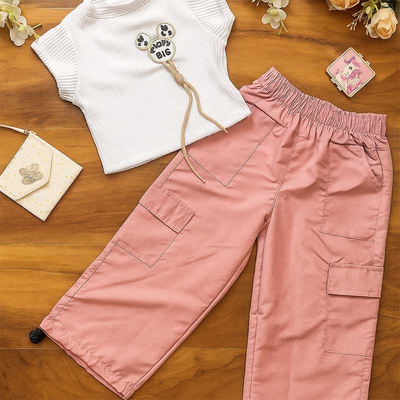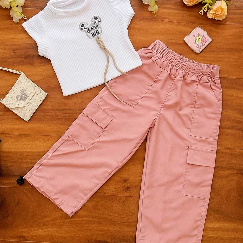 Outfit para niñas con aplique en relieve y pantalón cargo.