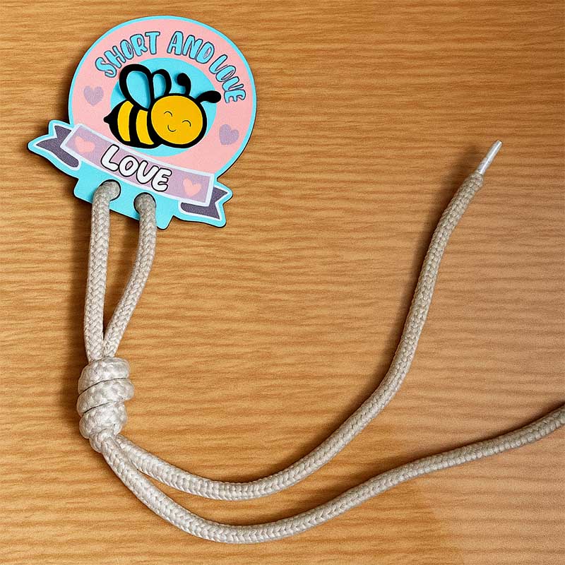 Accesorio infantil con aplique de abeja y cordón resistente.
